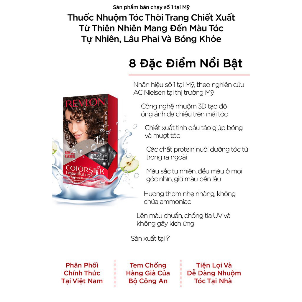 [ Số 42 ] Nhuộm tóc thời trang Revlon Colorsilk 3D hàng công ty với Keratin cho tóc bóng mượt và óng ánh