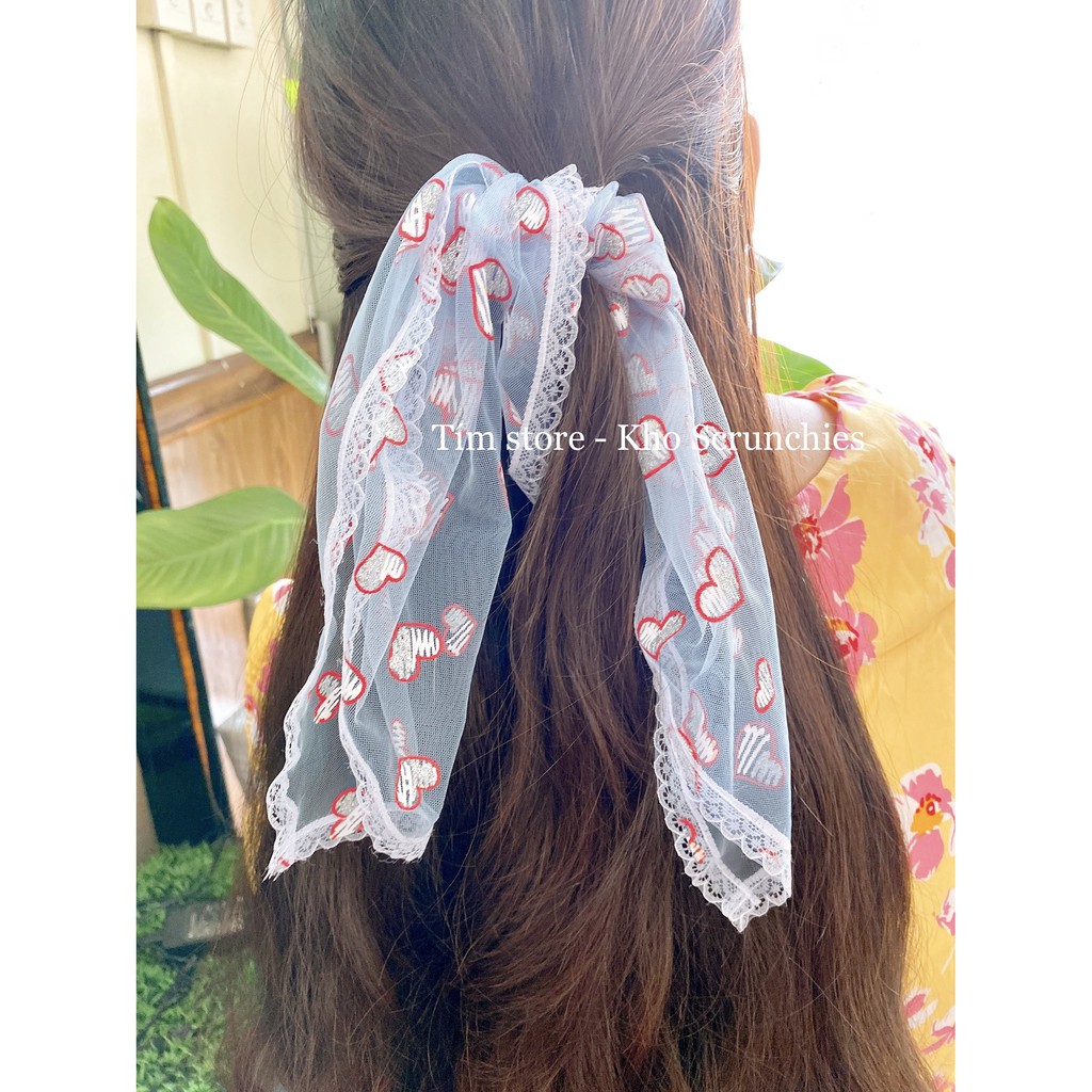 Giới thiệu {Ảnh Thật} KHĂN BANDANA TURBAN TIM VIỀN REN, ĐA NĂNG CHOÀNG CỔ, CỘT TÓC, ĐEO TAY