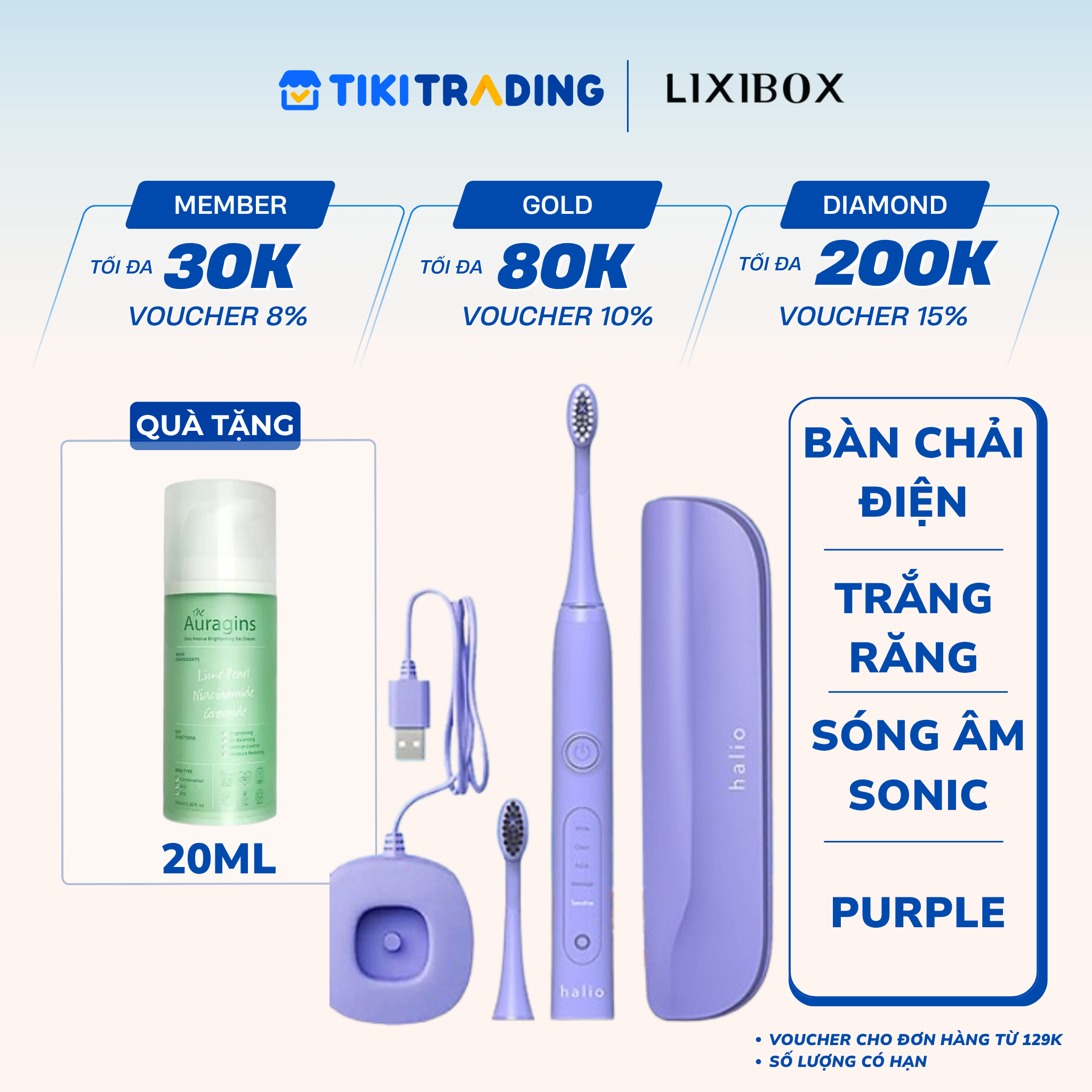 Bàn chải đánh răng điện Halio Sonic SmartClean Electronic Toothbrush sử dụng công nghệ sóng âm Sonic nhẹ nhàng làm sạch răng tối ưu được các chuyên gia nha sĩ hàng đầu khuyên dùng, đồng thời trang bị nhiều tính năng mới hiện đại đánh bay thức ăn thừa, các mảng bám cứng đầu, giúp làm sạch răng, hơi thở thơm mát, ngăn ngừa các bệnh về răng miệng hiệu quả hơn 10 lần so với các loại bàn chải thông thường. Công nghệ - Công nghệ sóng âm Sonic tần số cao lên tới 42.000 nhịp/phút tạo ra các bọt khí siêu nhỏ với áp lực lớn sẽ đánh bay lượng thức ăn thừa, mảng bám một cách nhanh chóng kể cả các khu vực khó làm sạch như kẽ răng, khoang miệng, giúp răng trắng sáng gấp 10 lần so với bàn chải thường - Động cơ Maglev có độ bền cao, giảm tiếng ồn, mang đến tính ổn định, mượt mà khi máy rung với cường độ lớn trong thời gian dài hoạt động - 4 chế độ làm sạch khác nhau phù hợp với mọi nhu cầu ( làm sạch cơ bản, làm sạch cho răng nhạy cảm, làm trắng và làm sạch sâu 3 phút) - Trang bị tính năng Quadpacer - hẹn giờ thông minh nhắc nhở chuyển vùng đánh răng sau 30s và Smartimer đảm bảo đánh răng đủ thời gian tiêu chuẩn 2 phút theo khuyến cáo của Nha sĩ - Ghi nhớ chức năng làm sạch thường sử dụng - Khả năng chống nước tối ưu IPX7 giúp bạn yên tâm sử dụng trong môi trường ẩm ướt, vệ sinh máy dễ dàng - Công nghệ sạc Type C tiện lợi, giúp sạc đầy pin nhanh trong 4h - Bàn chải được làm từ sợi Dupont cao cấp, êm ái, thiết kế sóng lượn ôm sát bề mặt răng, làm sạch răng hiệu quả, đầu sợi bọc tròn mềm mại, kháng khuẩn, không gây trầy xước nướu. - Trang bị pin Lithium Ion cao cấp 800mAh, lên đến 25 ngày sử dụng chỉ với một lần sạc đầy Thiết kế - Thân bàn chải được thiết kế nhám, chống trượt, chống thấm nước - Đầu bàn chải nghiêng 5 độ, sợi bàn chải mảnh 0,01mm giúp chạm sâu đến các răng nằm sâu bên trong, loại trừ các mảng bám ở khu vực khó chạm tới được. - Màu trắng kết hợp rose gold sang trọng và thanh lịch Chế độ - Clean : Làm sạch cơ bản, chải sạch các mảng bám trong từng kẽ răng, giúp làm sạch khoang miệng (2 phút) - Soft : Dành cho răng, nướu nhạy cảm hoặc lần đầu sử dụng bàn chải điện, làm sạch răng nhẹ nhàng, êm dịu cho nướu ( 2 phút) - Whitening : Làm răng trắng sáng hơn trong vòng 2 tuần đầu sử dụng ( 2 phút) - Deep Clean : Làm sạch sâu , đánh bay các mảng bám cứng đầu, thức ăn thừa tại các khu vực khó chạm tới được ( 3 phút)Giá sản phẩm trên Tiki đã bao gồm thuế theo luật hiện hành. Bên cạnh đó, tuỳ vào loại sản phẩm, hình thức và địa chỉ giao hàng mà có thể phát sinh thêm chi phí khác như phí vận chuyển, phụ phí hàng cồng kềnh, thuế nhập khẩu (đối với đơn hàng giao từ nước ngoài có giá trị trên 1 triệu đồng).....