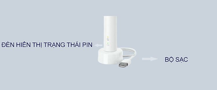 • Chỉ báo pin: Đèn hiển thị trạng thái pin