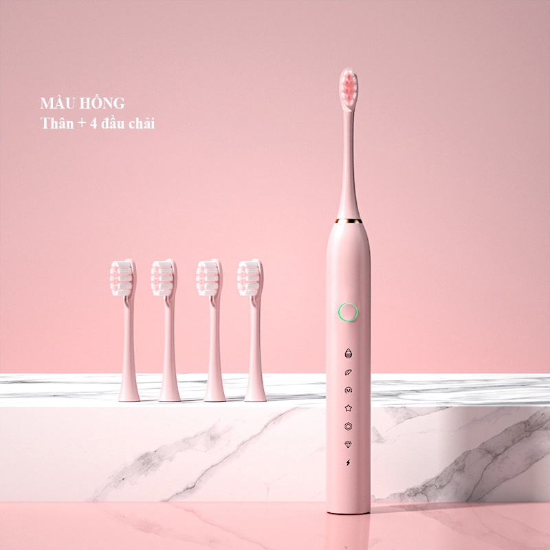 - Kèm 4 đầu bàn chải điện siêu mềm mượt