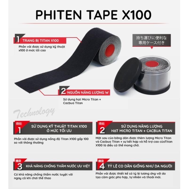 Băng dán cơ Tape X100 Roll ban đầu được phát triển không cho mục đích thương mại và phục vụ cho việc nghiên cứu của các nhà nghiên cứu AQUA TITANIUM của Phiten. Sau nhiều giai đoạn phát triển, sản phẩm được nhận ra là loại băng quấn tốt nhất của Phiten.