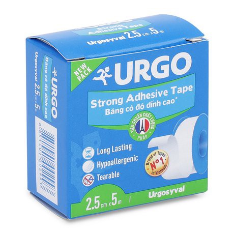 Băng keo lụa có độ dính cao Urgo Syval băng keo lụa nền đan dệt, ít gây kích ứng, keo có độ dính lâu dài, dính chắc trong tất cả các trường hợp. Dùng để cố định các miếng băng nhỏ và các thiết bị y tế.