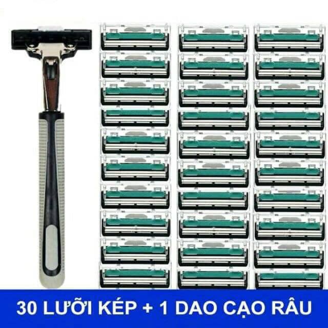 Set gồm: 1 dao cạo+ 36 bàn cạo kèm dao lam + 1 tuýp kem cạo râu.