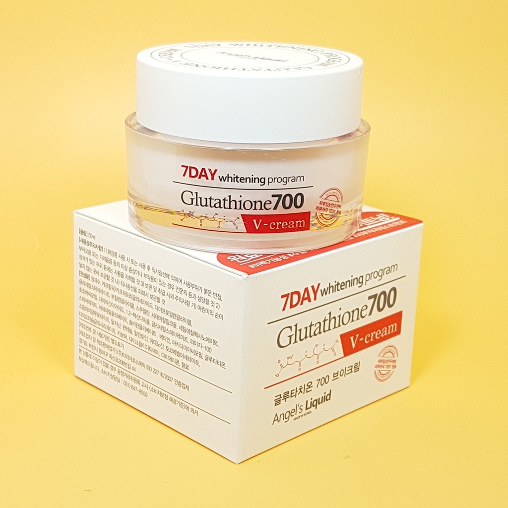 Kem dưỡng trắng da 7 day Whitening Program Glutathione 700 V-cream được chiết xuất từ Glutathione 700mg, Niacinamide và chiết xuất thực vật tự nhiên (hạt hướng dương và hoa hồng).