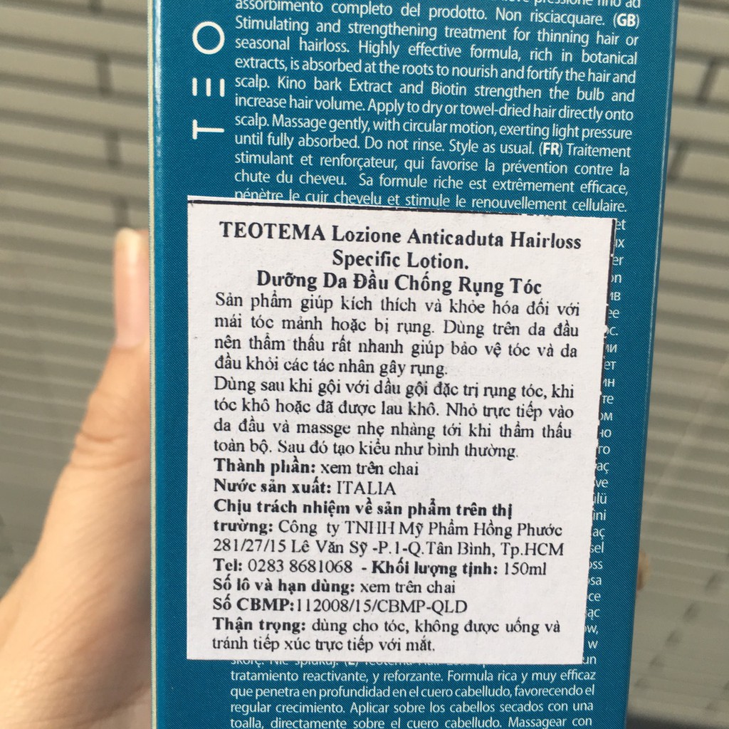 Dầu gội và serum TEOTEMA HAIRLOSS là tổng hợp của các dưỡng chất được chiết xuất từ tự nhiên, hỗ trợ tăng cường hoạt động của tế bào chân tóc, khỏe hóa chân tóc. Đồng thời tăng cường độ dày sợi tóc và ngăn ngừa rụng tóc, xóa bỏ nỗi lo tóc sơ yếu. Sản phẩm đặc biệt hiệu quả đối với những mái tóc yếu , hay rụng , tóc mảnh và thưa