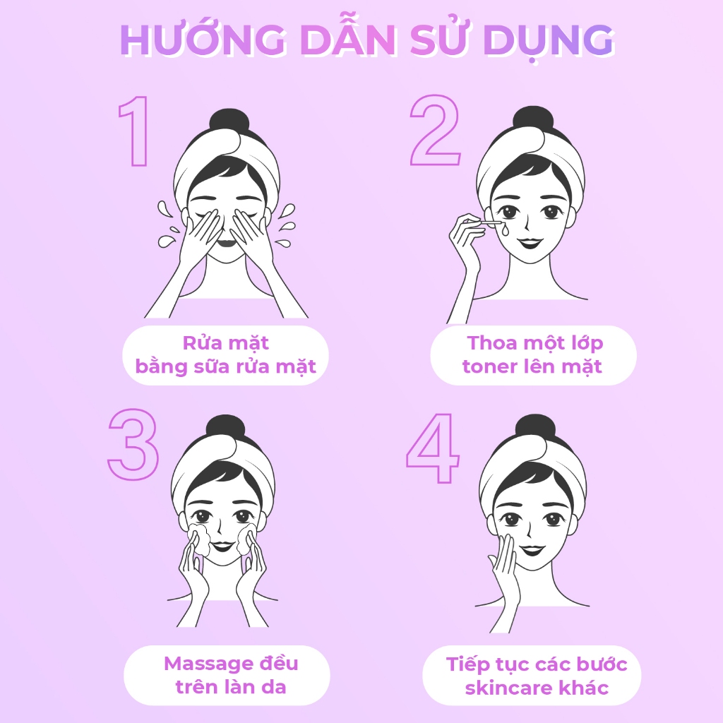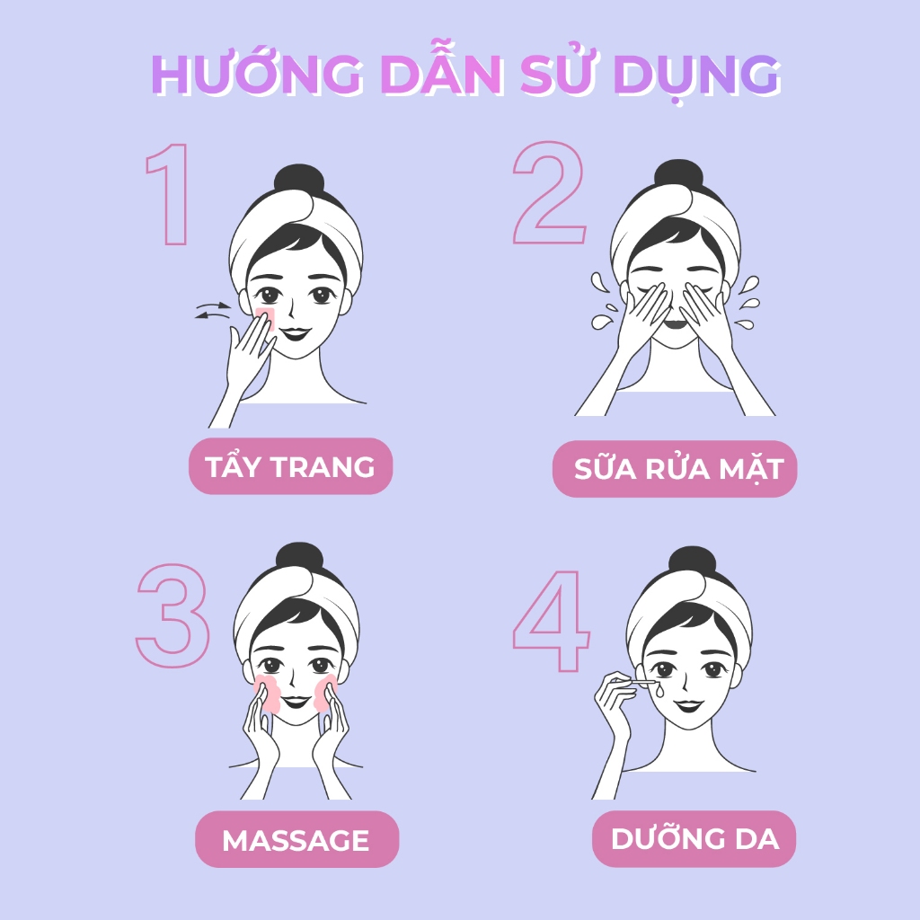 Thoa đều lên các vùng da trện mặt, Massage nhẹ nhàng cho đến khi dưỡng chất thẩm thấu vào da