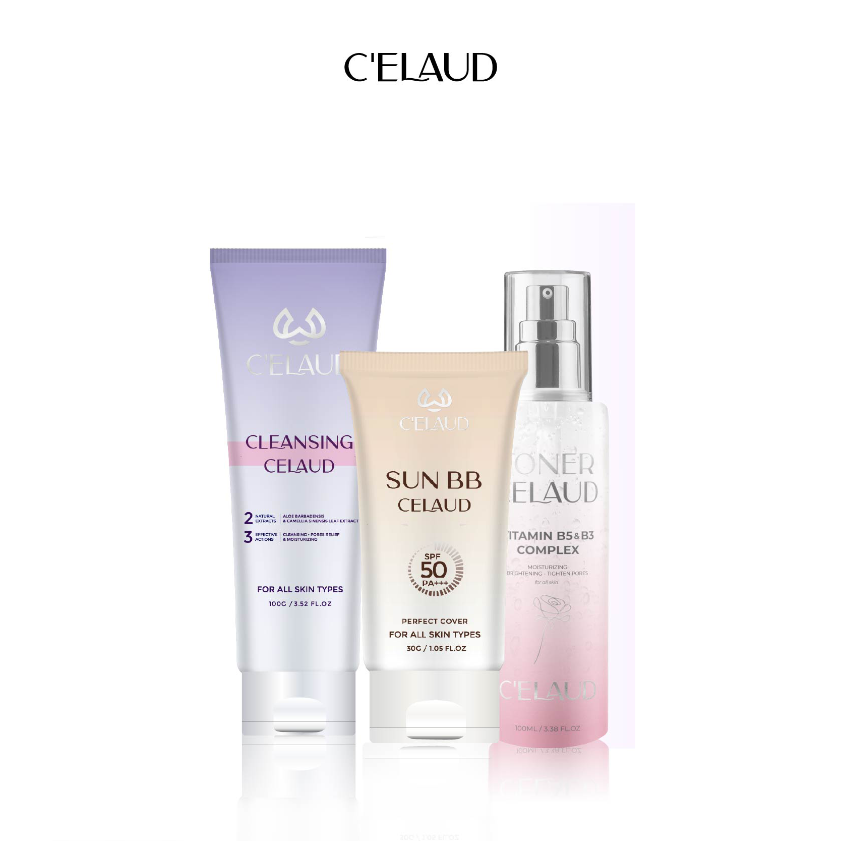 Combo sữa rửa mặt sạch sâu, nước hoa hồng làm dịu da và kem chống nắng Celaud