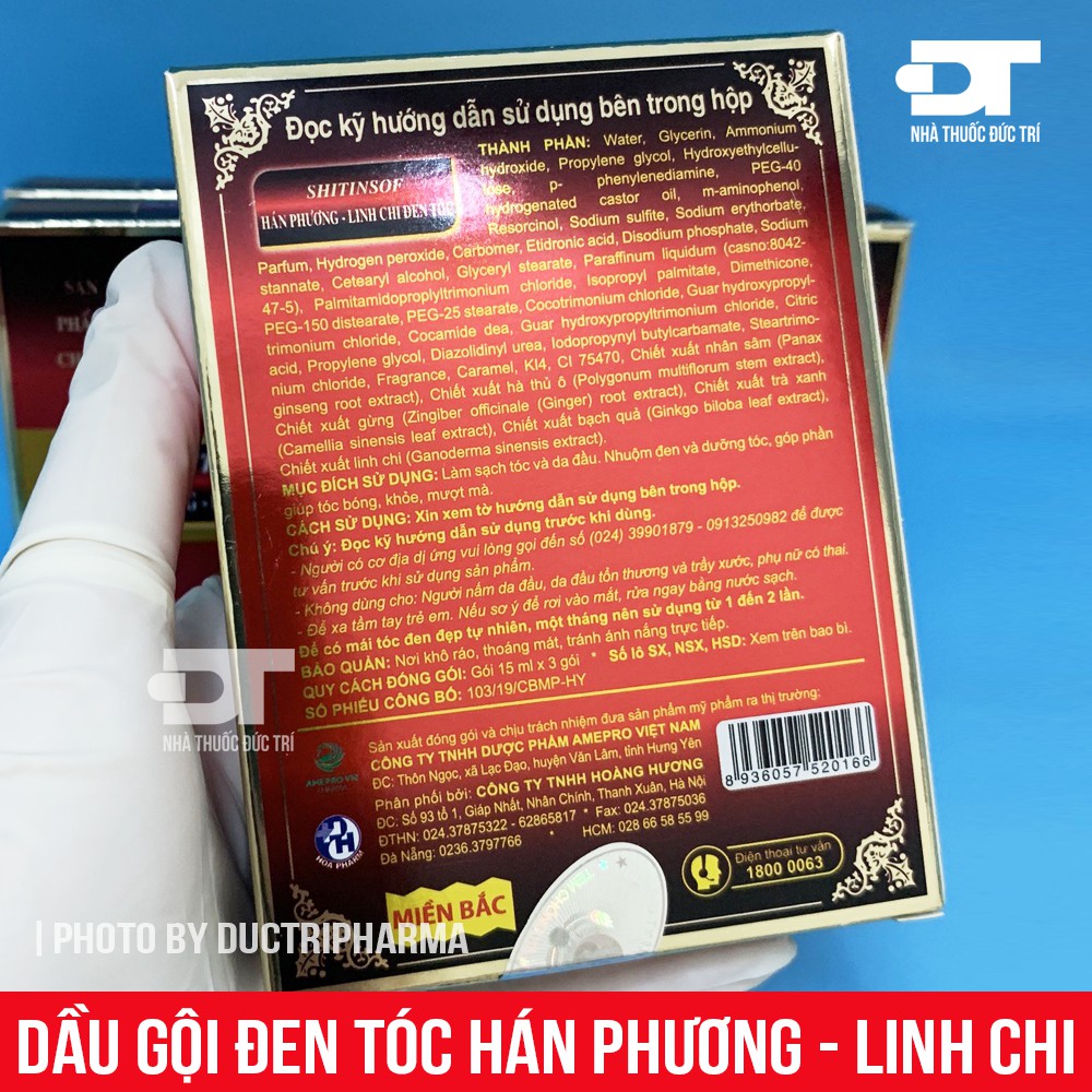Giới thiệu Dầu gội đen tóc Shitinsof Hán Phương Linh Chi (Hộp 3 gói)