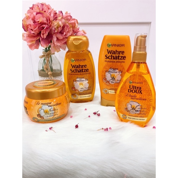 Sắc Đẹp > Chăm sóc tóc > Dầu gội || Dầu gội, xả, ủ Garnier Argan và hoa Camelia