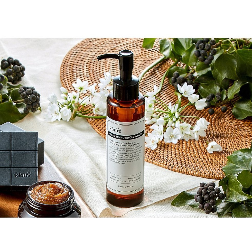 Klairs Gentle Black Deep Cleansing Oil vẫn hay được gọi với cái tên "dầu đen tẩy trang", do thành phần chứa 3 loại dầu đặc trưng là dầu đậu nành đen, dầu mè đen và dầu hạt quả lý chua đen (black currant).