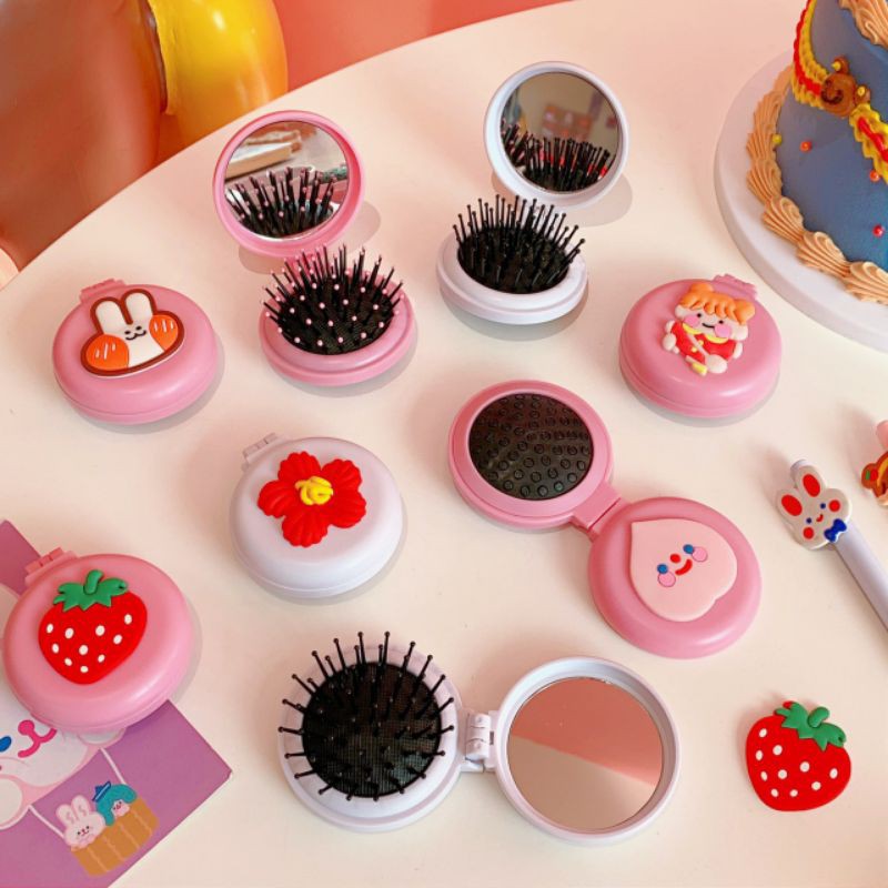 Sắc Đẹp > Dụng cụ làm đẹp > Dụng cụ chăm sóc tóc > Lược chải || (Freeship) Gương lược cute gấp gọn .