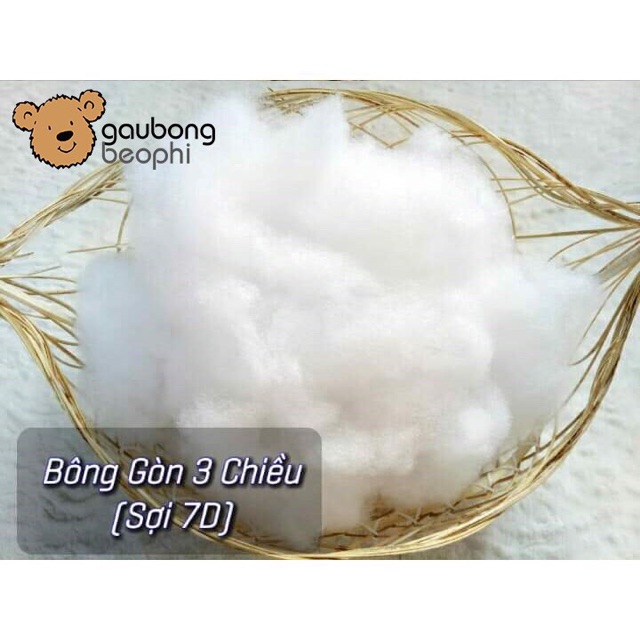 * Giá thành bông gòn 3 chiều sợi 7D ở mức trung bình so với các loại khác. So với chất lượng đây là một giá tốt. Một gối nằm có kích thước 40x60cm thường sử dụng khoảng 500 - 700 gram bông gòn 7d.