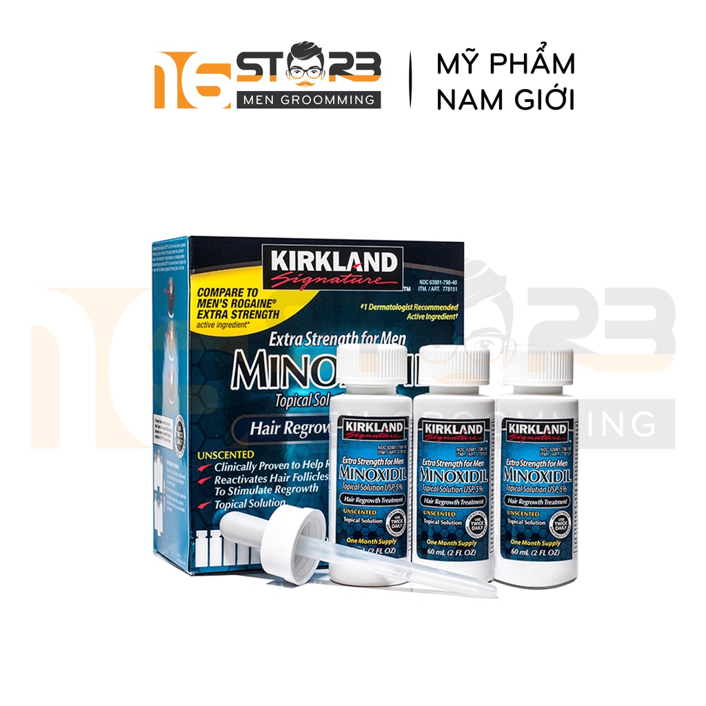 Dung dịch mọc Râu Tóc Kirkland Minoxidil 5% được sản xuất tại Mỹ. Được cục quản lý dược phẩm FDA Hoa Kỳ công nhận là sản phẩm có tác dụng mọc lông, tóc hói, râu tại vị trí sử dụng (Sản phẩm Minoxidil của Kirkland được nhà sản xuất theo thành phần đặc biệt dành riêng cho nam giới)