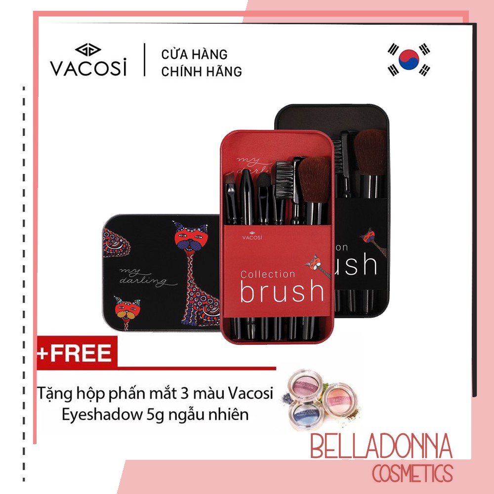 Giới thiệu [Hàng chính hãng] Bộ cọ hộp sắt 6 cây Vacosi Makeup House (Đen) Tặng hộp phấn mắt 3 màu Vacosi Eyeshadow 5g ngẫu nhiên