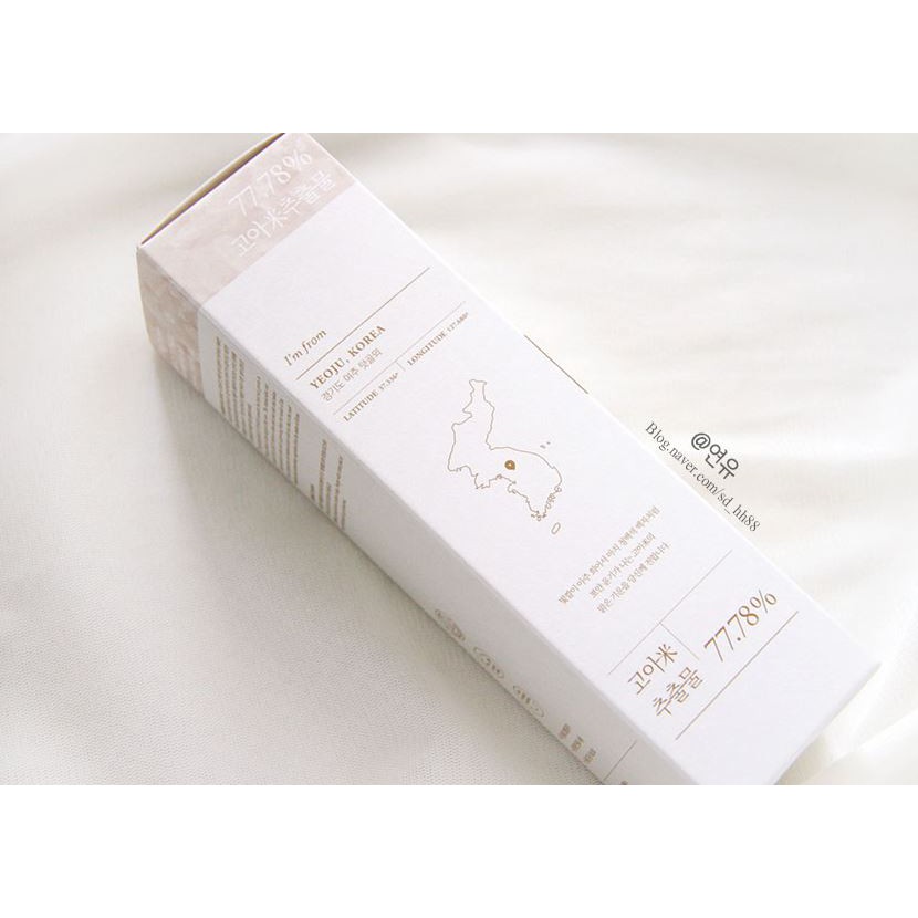 - I'm From Rice Toner chiết xuất từ gạo 77,8% được trồng ở vùng Yeoju Hàn Quốc tinh khiết giàu dưỡng chất, cám gạo và Niacinamide giúp nuôi dưỡng làn da sáng rạng ngời, khỏe mạnh và săn chắc