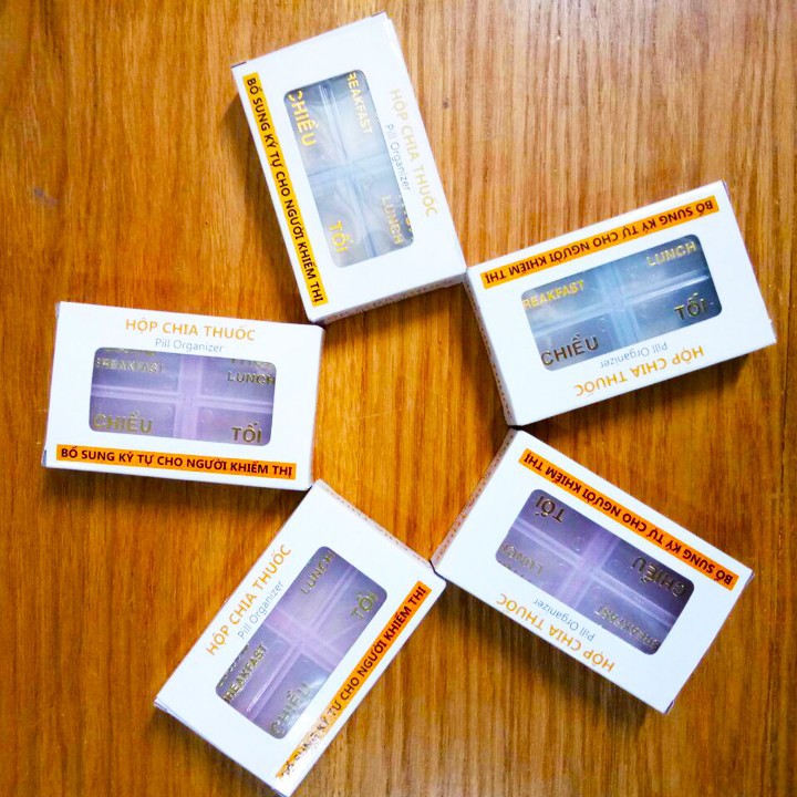 Mỗi hộp đơn có 4 ngăn chứa chữ nổi “Sáng – Trưa – Chiều – Tối” giúp ghi nhớ, tiện sử dụng cho người hay quên, người cao tuổi, bận rộn, hay đi du lịch…