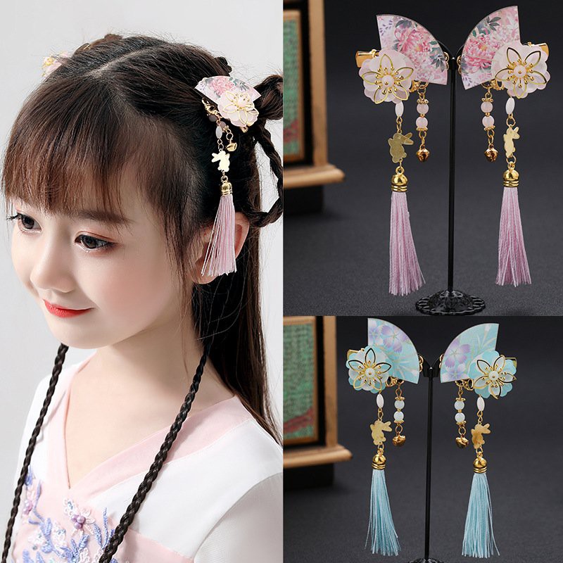 Phụ Kiện Thời Trang > Phụ kiện tóc > Băng đô tóc || Một đôi Cài tóc quạt tua rua thỏ kiểu cổ trang sakura thả