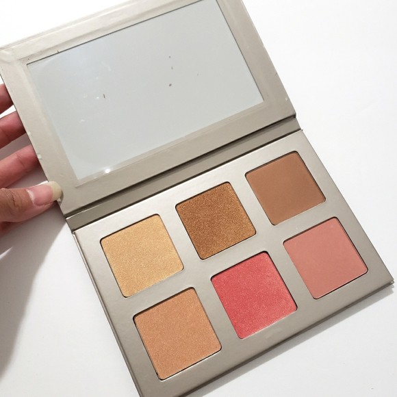 bảng gồm 6 ô màu và gương lớn. 2 màu má, 2 highlight, 2 contour. Tuy nhiên với những màu này bạn đều có thể dùng như màu mắt. 1 bảng mắt cho tất cả.