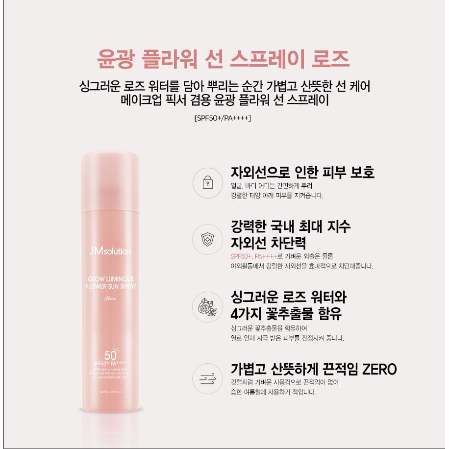 Giới thiệu JMSolution Xịt Chống Nắng Toàn Thân Chiết Xuất Hoa Hồng Glow Luminous Flower Sun Spray SPF50+ PA++++ 180ml