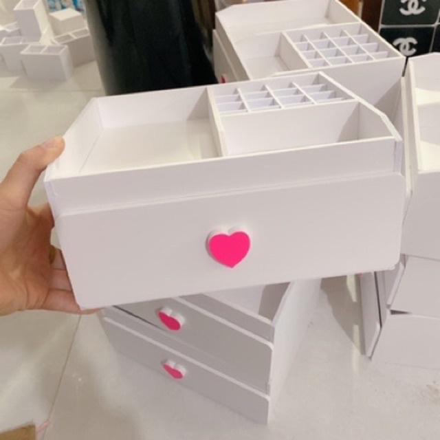 Kệ đựng mỹ phẩm nhỏ trắng tim hồng 16 ô son 25cm