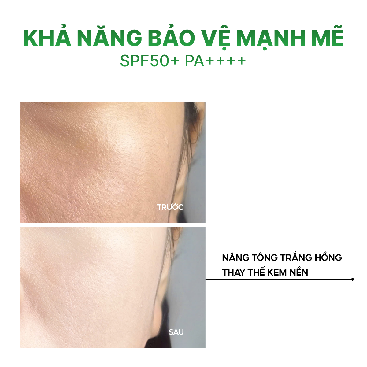 Chỉ số SPF 50+ và PA++++ giúp bảo vệ da hiệu quả trước tác động của tia UV.