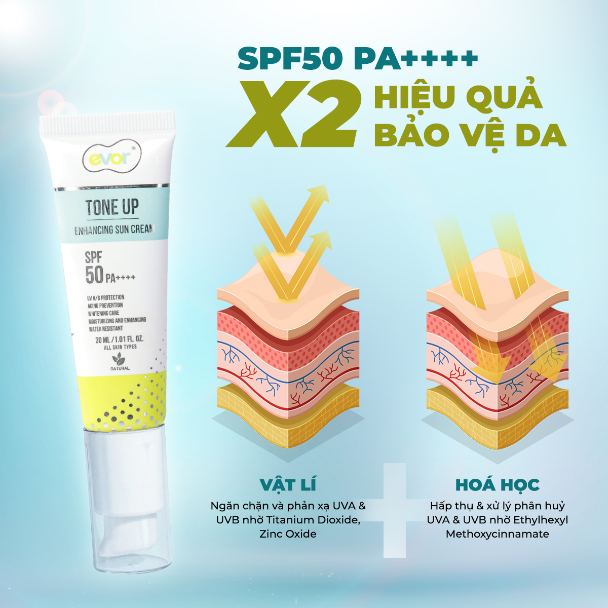 Giới thiệu Kem chống nắng nâng tone makeup trẻ hoá dưỡng trắng - Tone Up Enhancing Sun Cream 30ml | EVOR