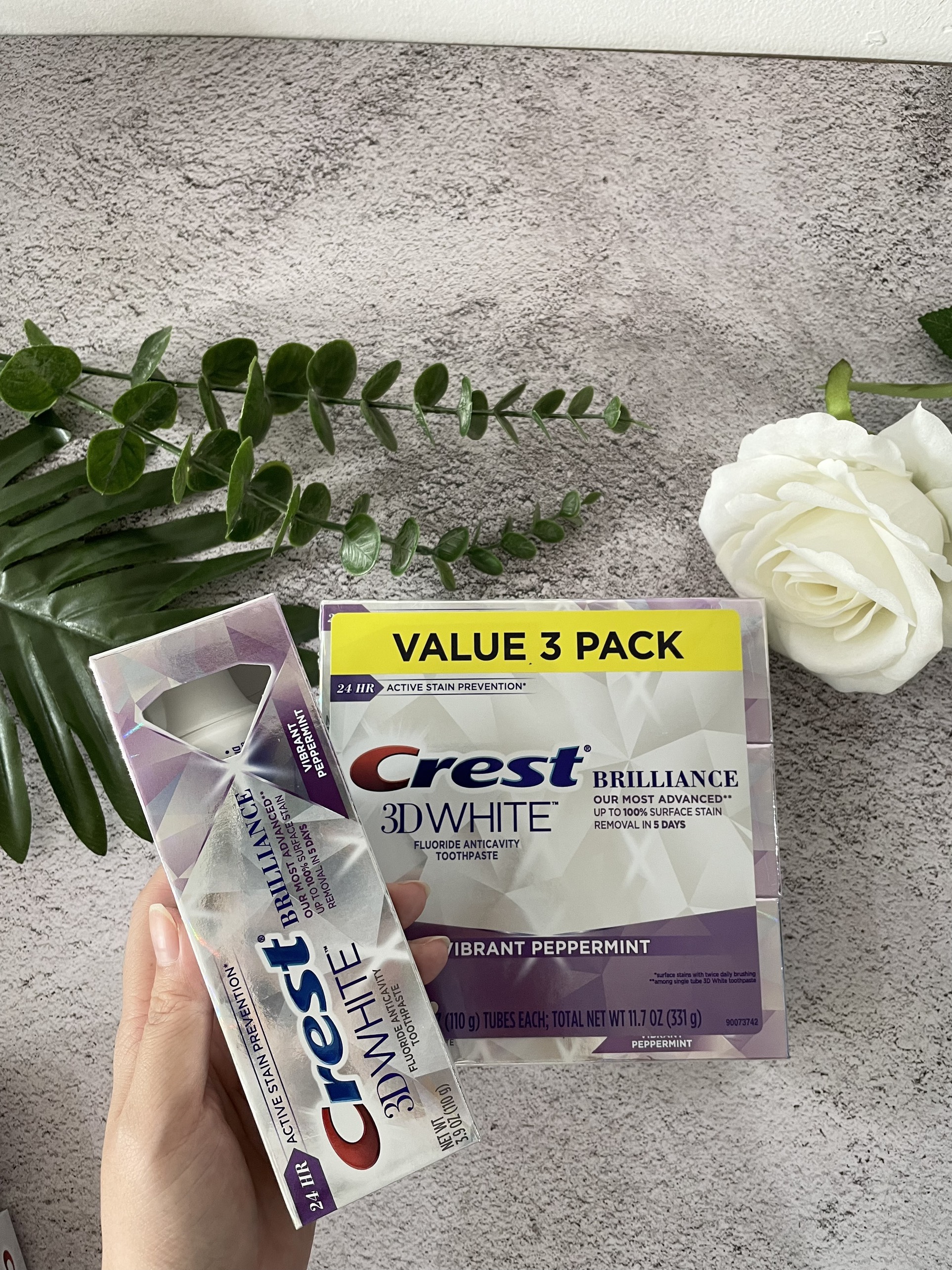 – Fluoride có trong Crest 3D White Brilliance sẽ nhanh chóng lấy đi các mảng bám trên răng, giúp răng trắng sáng, chắc khỏe.