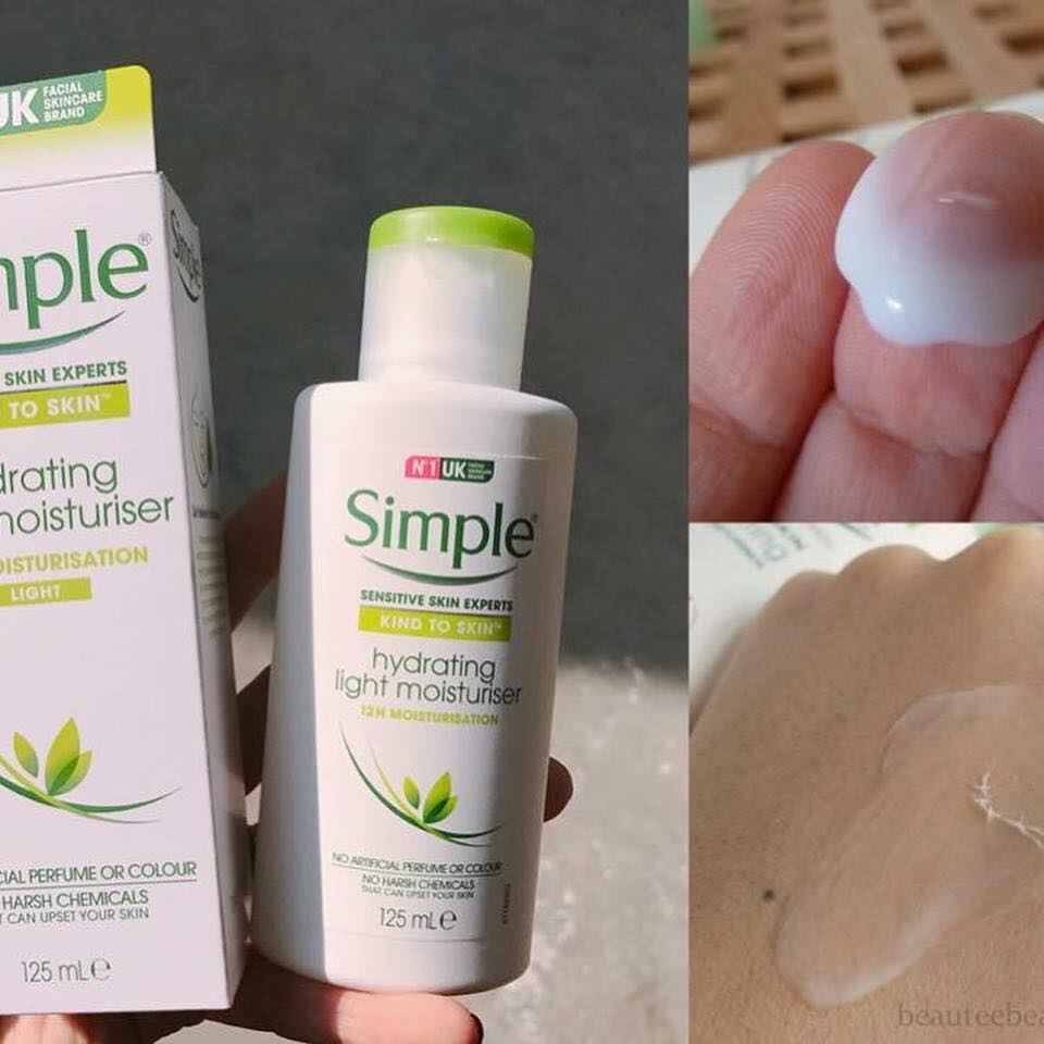 - Simple Hydrating Light Moisturiser không chứa phẩm màu hay nhuộm, không chứa hương liệu nhân tạo hoặc hoá chất gay gắt có thể dẫn đến kích ứng da hoặc bít lỗ chân lông