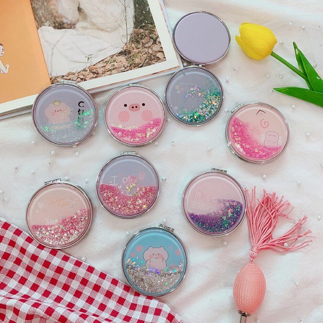 Gương gập 2 mặt mini thiết kế vỏ kim tuyến nhủ nước lấp lánh nhiều mẫu