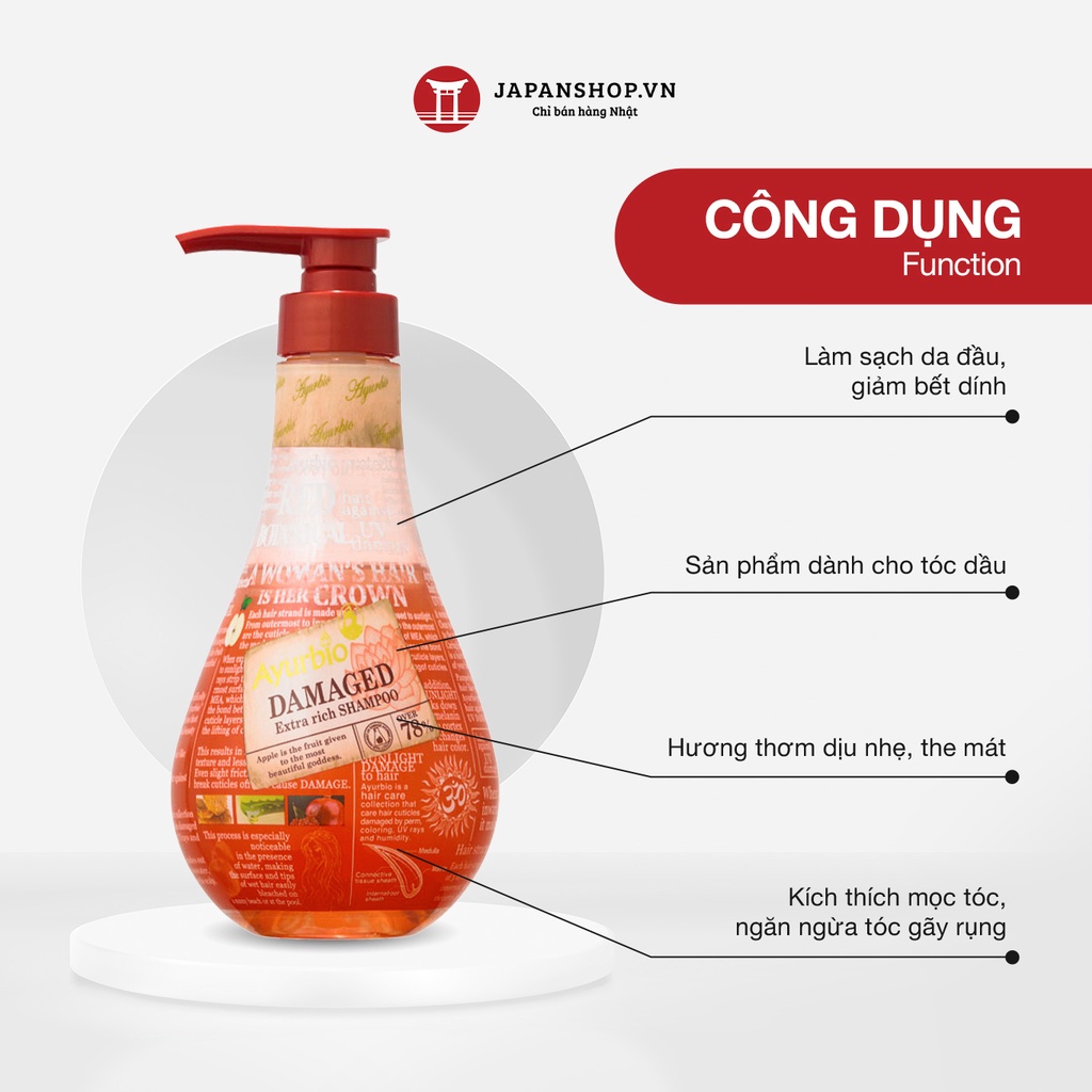 - Ayurbio - dầu gội tinh chất thiên nhiên được chiết xuất từ tế bào gốc táo đỏ, tinh chất nước hoa, Dầu hạt lựu, Tinh dầu hoa sen, Chất sừng tươi, Collagen tươi... giúp đẩy lùi sự lão hóa da dầu, ngăn ngừa rụng tóc, giúp tóc mọc trở lại.