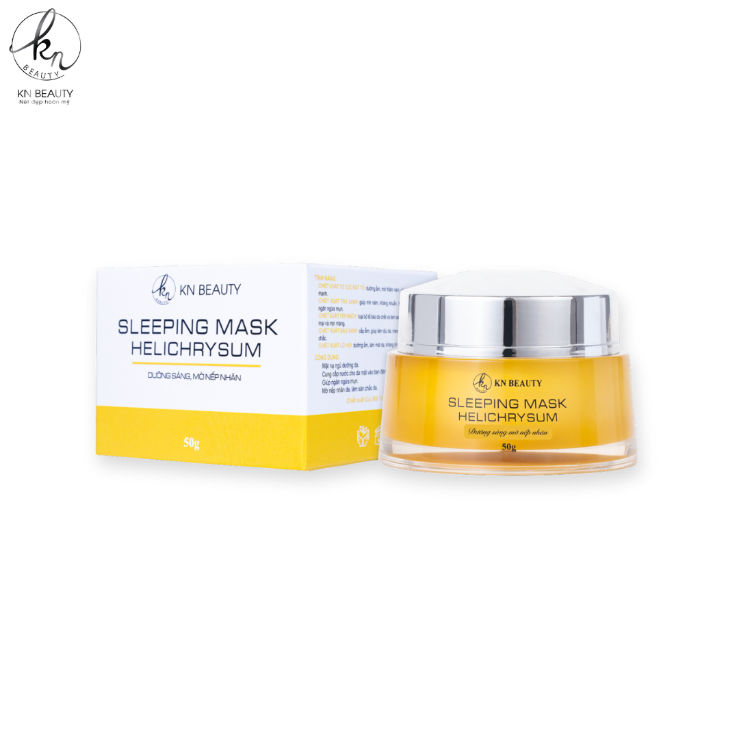 Mặt nạ ngủ chiết xuất hoa cúc Sleeping Mask - Helichrysum là sản phẩm dưỡng da đến từ thương hiệu mỹ phẩm KN Beauty, với công thức thiên nhiên  lành tính.  Kết cấu lỏng nhẹ, thấm nhanh và không gây nhờn dính. Chất gel trong mướt chuyển hóa thành các phân tử nước nhỏ, dễ dàng thấm sâu vào các lớp biểu bì, cấp nước và giữ ẩm cho từng tầng da, đem lại làn da mướt mịn như nhung.