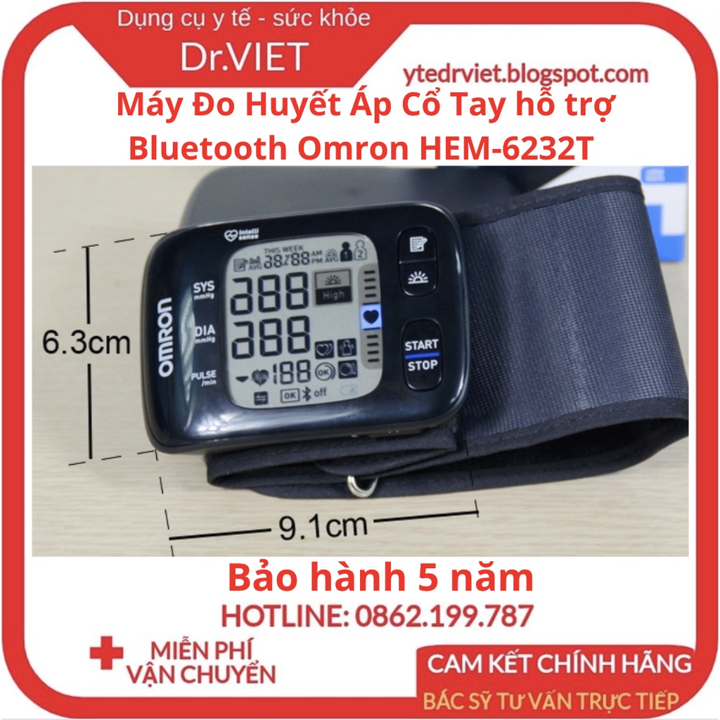MÁY ĐO HUYẾT ÁP CỔ TAY HỖ TRỢ BLUETOOTH OMRON HEM-6232T