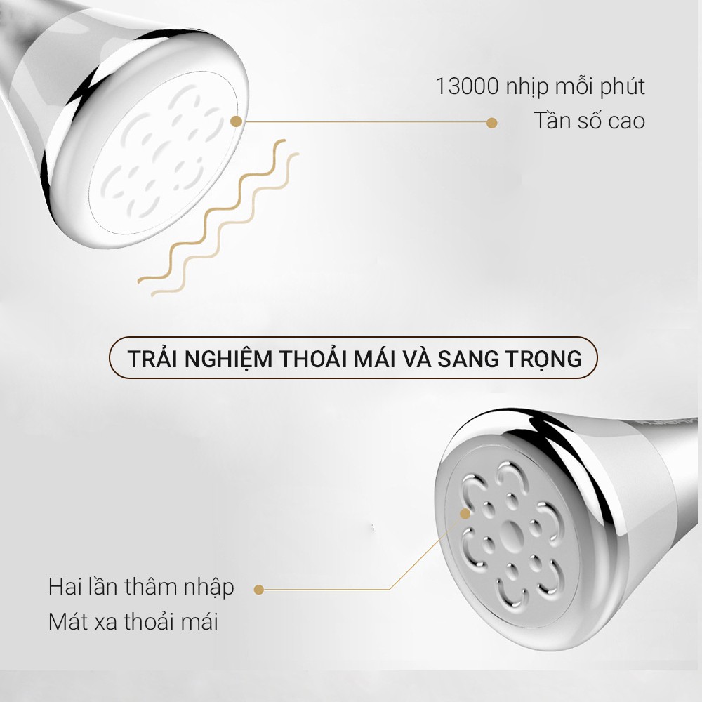 Massage rung tần số cao lên tới 13000 nhịp/phút kích thích da mặt đẩy dưỡng chất từ kem dưỡng, tinh chất vào sâu hơn để phục hồi sức sống cho làn da, làm cho làn da khoẻ mạnh hơn.