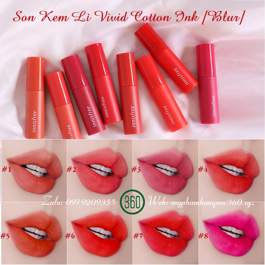 Giới thiệu [New] Son Kem Lì Mịn Nhẹ Innisfree Vivid Cotton Ink [Blur] 4g