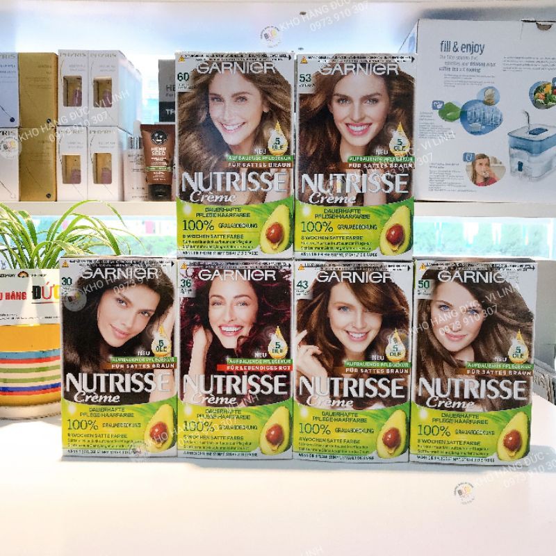 – Dòng thuốc nhộm tóc Garnier Nutrisse là một trong những sản phẩm nhuộm tóc số 1 của thương hiệu Garnier của Pháp. Thuốc nhuộm tóc được thiết kế có 3 chức năng trong một sản phẩm: nhuộm màu + dưỡng tóc + che tóc bạc.