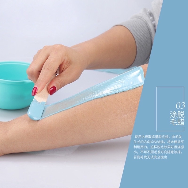 - Bước 4: dùng que gỗ phết 1 lượng sáp trải đều mỏng theo chiều lông mọc lên vùng da.