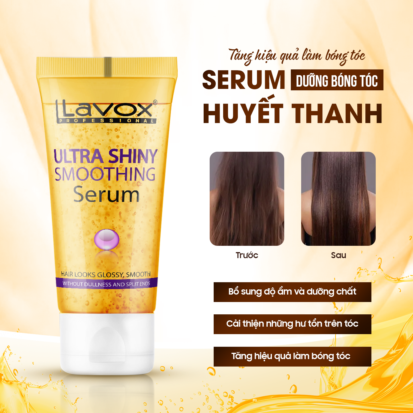 Với những tính năng đặc biệt, serum huyết thanh dưỡng bóng tóc Lavox cung cấp độ ẩm và dưỡng chất cải thiện mái tóc khô xơ, xoăn cứng đồng thời bảo vệ tóc khỏi tác động nhiệt, mang đến cho bạn mái tóc bóng mượt, suôn mềm ngay lập tức.
