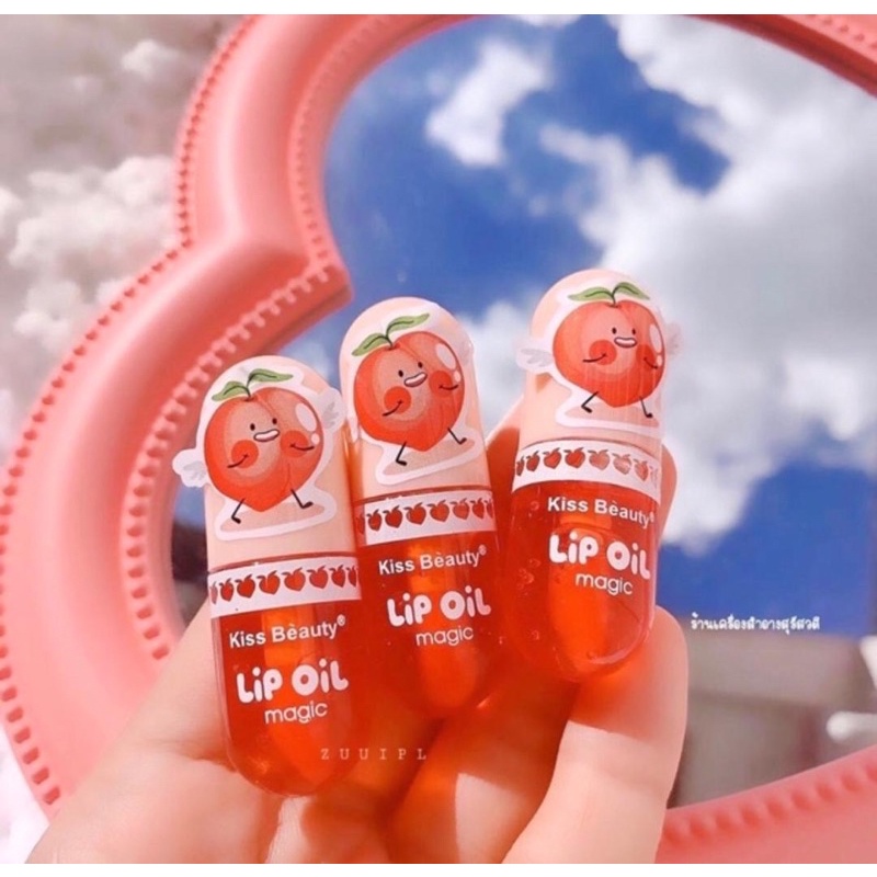 Son Dưỡng Môi Đào KISS BEAUTY LIP OIL PEACH Môi Căng Mọng Quyến Rũ Dưỡng Môi Hồng Tự Nhiên Son Dầu Bóng Tráng Gương