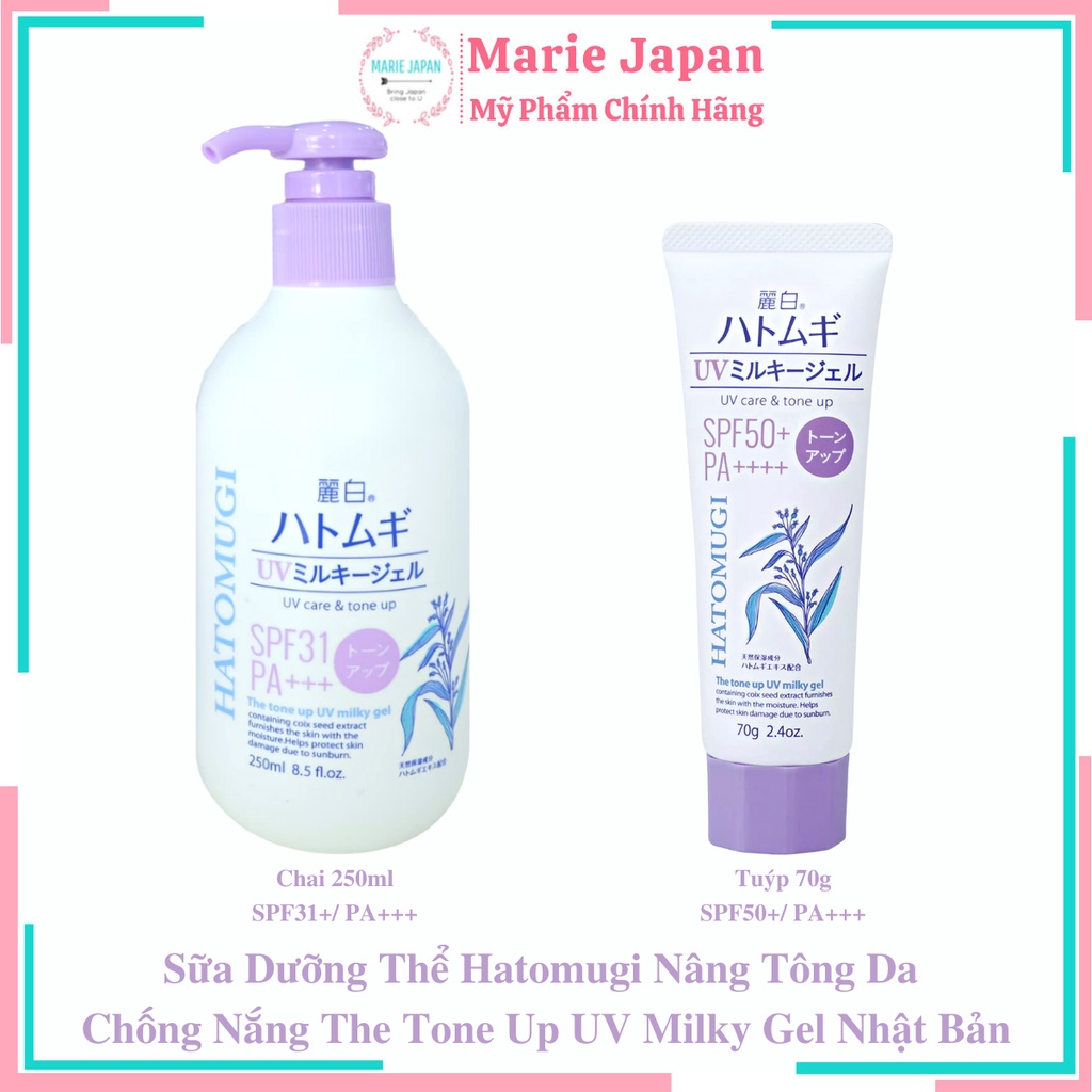 Giới thiệu Sữa Dưỡng Thể Hatomugi Nâng Tone Chống Nắng Nhật Bản