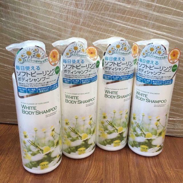 - Với hương thơm dịu nhẹ từ hoa nhung tuyết, White Body Shampoo Manis giúp tinh thần thư giãn, thoải mái sau những giờ làm việc, học tập căng thẳng. Bạn sẽ có cảm giác như đang được chăm sóc da tại các Spa chuyên nghiệp.