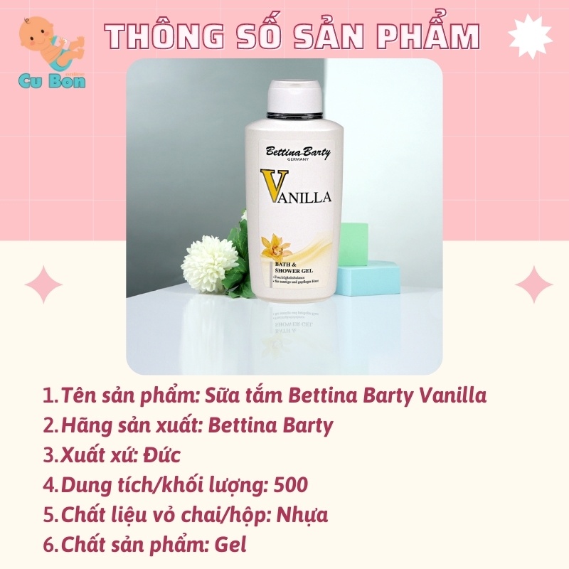 Giới thiệu Sữa Tắm Nước Hoa trắng da của Đức cao cấp Bettina Barty Vanila 500ml Giữ Hương Thơm Lâu Tự Nhiên làn da mịn màng mềm mại
