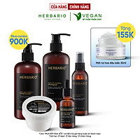Bộ 5 Chăm Sóc Tóc Vỏ bưởi & Bồ kết Herbario: Dầu gội 300ml + Dầu xả 300ml + Xịt dưỡng 100ml + Serum 30ml + Kem ủ tóc 200ml
