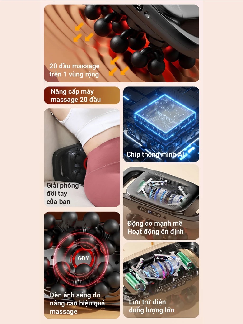 - Rung tần số cao , Massage hiệu quả gấp 20 lần.