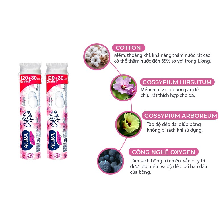 Giới thiệu Bông tẩy trang cotton pad 150 miếng AURA LUVELA BTT02