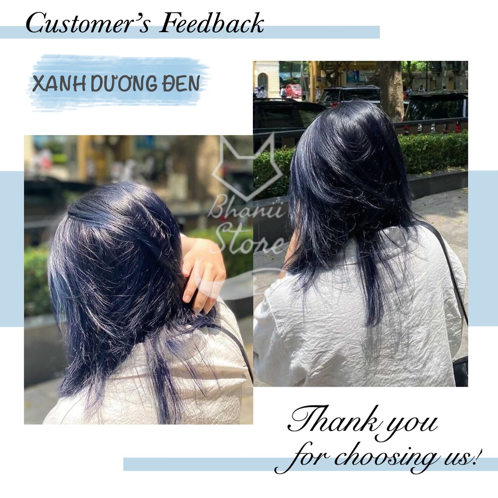 - Thuốc nhuộm tóc màu Xanh dương đen khói bhanii store có thể nhuộm được trên nền tóc đen nâu. Bạn vui lòng nhắn tin cho chúng mình để được tư vấn thêm về cách nhuộm nhé!!