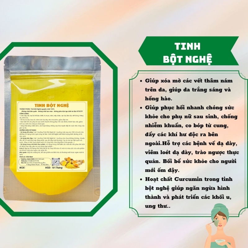 Giới thiệu Tinh bột nghệ nguyên chất 100% - trắng da, mờ thâm, ngừa mụn, giảm cân, hỗ trợ các vấn đề về dạ dày | Bột Natural