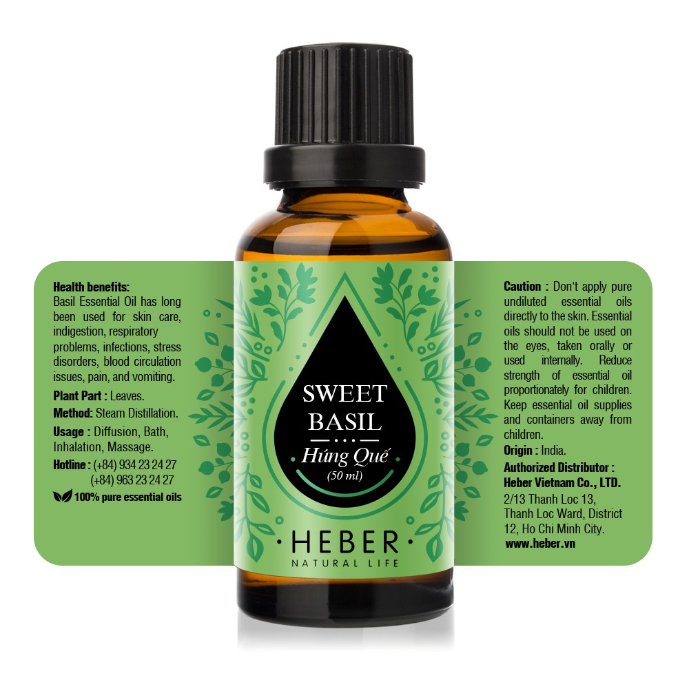 Giới thiệu Tinh Dầu Húng Quế Heber Natural Life- Sweet Basil, Cao Cấp Nhập Khẩu, Thiên Nhiên Nguyên Chất, Chai 10ml/30ml/50ml
