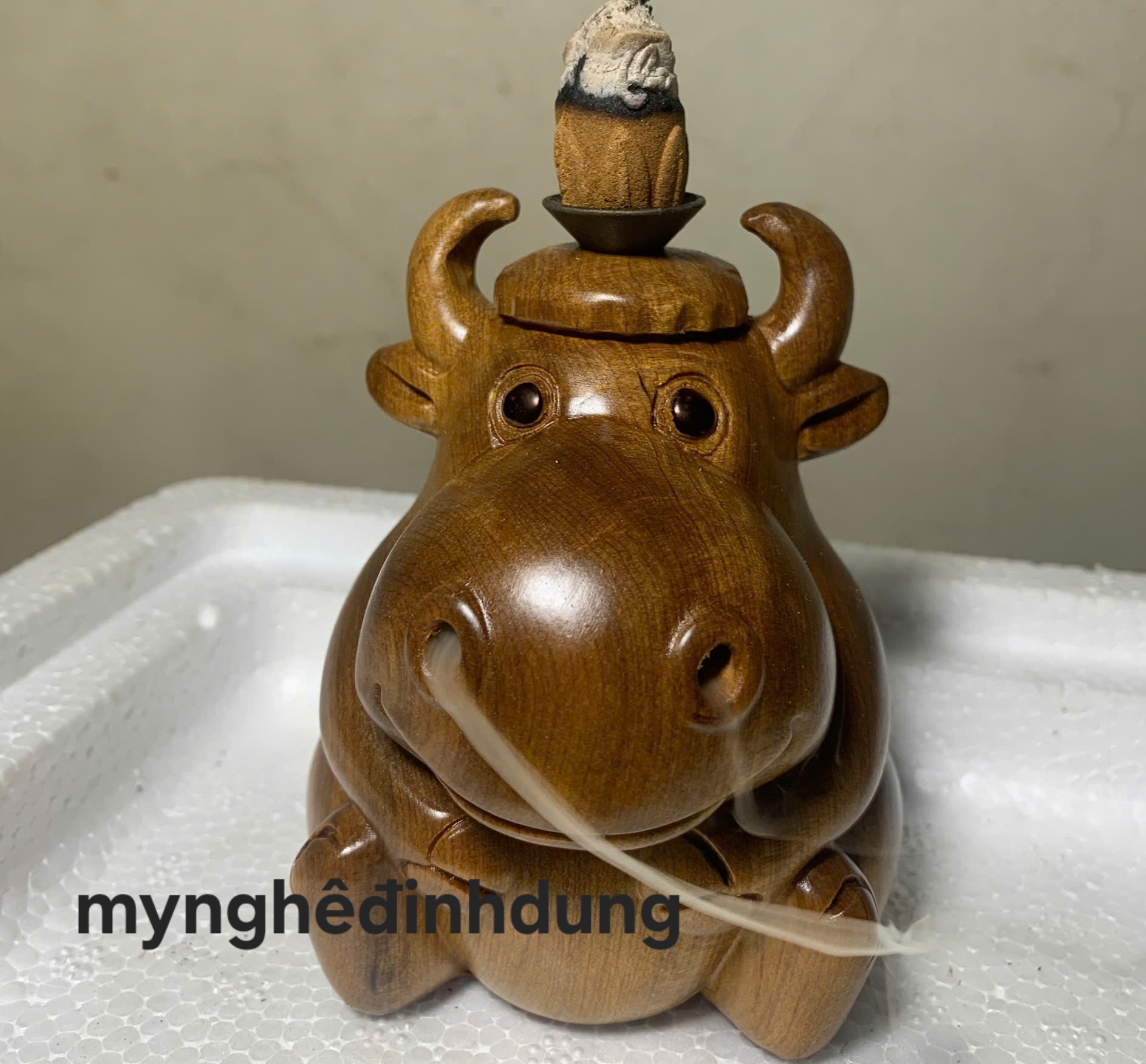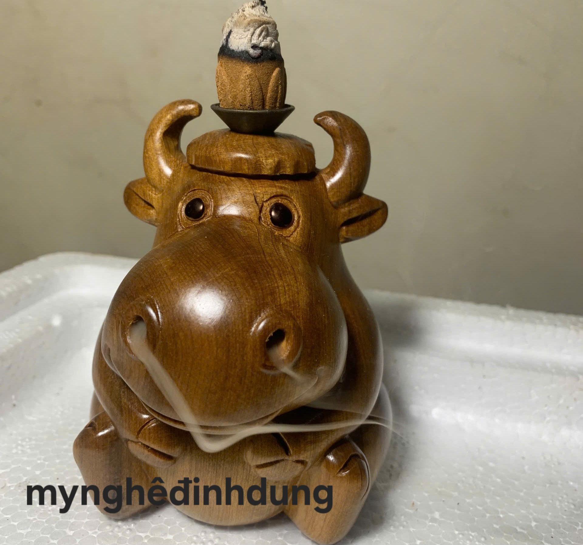 _ Trâu chibi xông trầm được làm bằng chất liệu gỗ bách xanh liền khối tự nhiên 100%