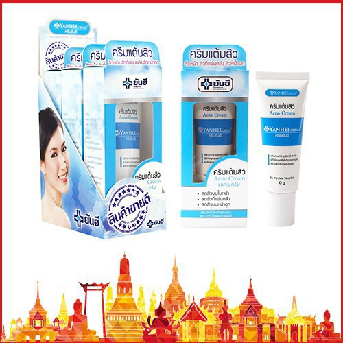 Kem thoa mụn Acne Cream Yanhee mịn màng làn da được xuất xứ từ Thái Lan, kiểm định an toàn và đặc ký mã FDA cục quản lý thực phẩm, dược phẩm tại Thái Lan, được tạo ra bởi các đội ngũ bác sĩ hàng đầu của bệnh viện Yanhee Thái Lan. Sản phẩm được chiết xuất từ lá Lô Hội, ngoài ra còn có một thành phần khác như: Sulphur, Polysorbate 60, Polyacrylamide, Propylene glycol, Salicylic Acid, Zinc Acetate, Glycerin, Cetyl Alocohol, Stearic Acid, Methyparaben, Propylparaben, khoáng dầu và nước tinh khiết an toàn tuyệt đối với làn da, kể cả da khô lẫn da nhờn.